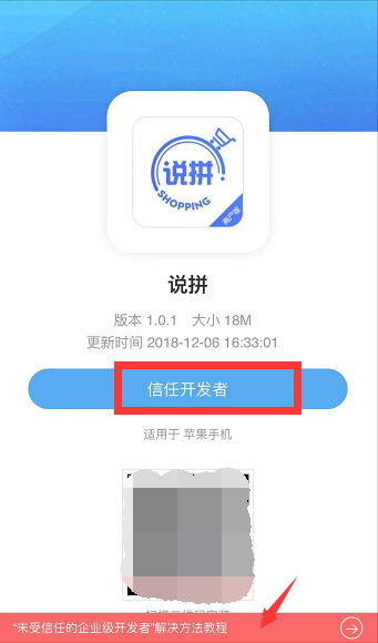 提示:由于APP大小的缘故,建议等到APP安装完成后,再去点击蓝色按钮“信任开发者”